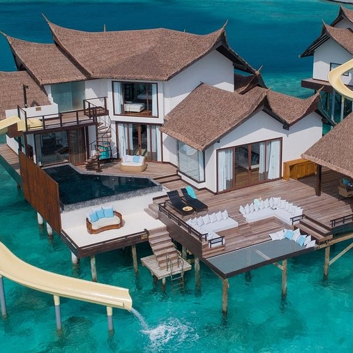 라군보다는 수중환경 중심의 섬환경을 보유하고 있으며 워터 슬라이드가 딸린 풀빌라부터 다인 어라운드(+코스요리)까지 몰디브 자연과 함께 럭셔리한 휴양을 만끽할 수 있습니다.