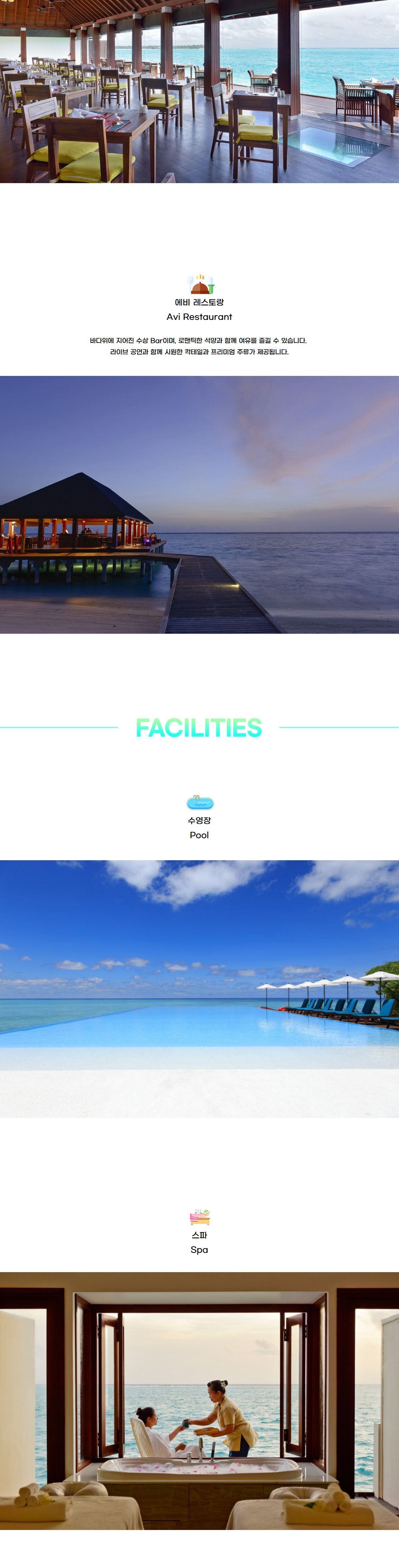 몰디브스러움과 모던한 디자인이 객실과 부대시설을 운영하고 있습니다.