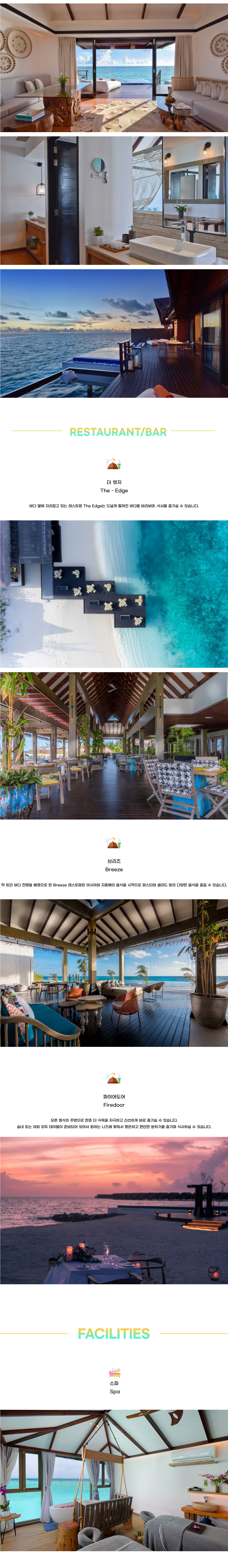 리조트는 말레 공항에서 스피드보트로 약 20분 소요되며 몰디브 도착 시 1시간 이내로 리조트 체크인이 가능합니다.