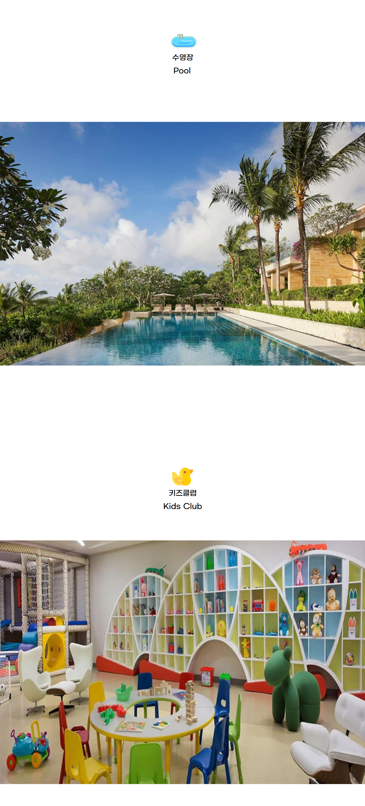 특히 워터빌라및 개인풀을 보유한 스위트룸은 부대시설과의 위치가 가까우며