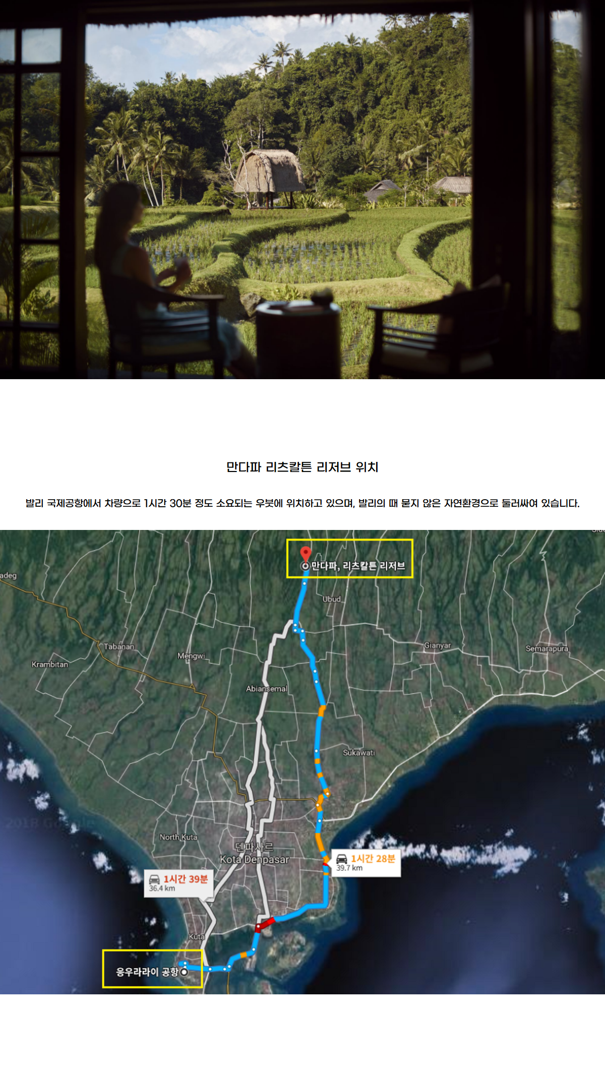 발리의 원시적인 자연환경을 만나보실 수 있는 '우붓' 지역에 위치하고 있는 만다파 리츠칼튼 풀빌라는 자연미, 직원들의 수준 높은 서비스, 최고급 풀빌라와 부대시설까지 완벽한 휴양을 즐기기에 1% 부족함 없는 완벽한 컨디션을 자랑합니다.